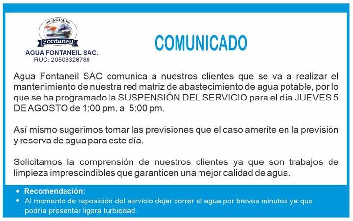 SUSPENSIÓN DE SERVICIO DE AGUA